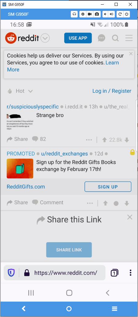 The "share" links are working, as does the "copy link" feature therein, but the popup for the "embed" option never completes loading. That's because the popup is for embed.redditmedia.com, but tries to load from https://www.reddit.com/comments/, and is blocked. Given that the user has to opt into clicking on "embed" to get that far, we can probably just un-block reddit.com for embed.redditmedia.com frames.