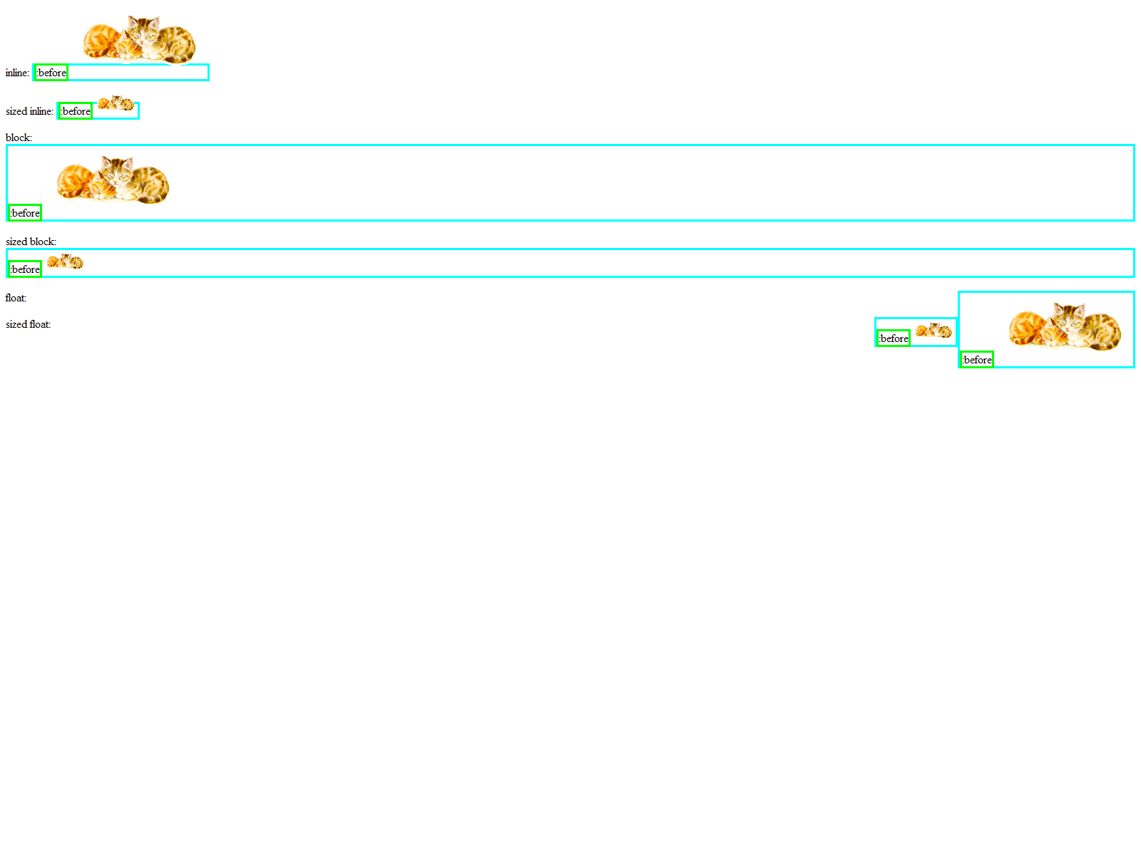 contents of the :before before the image inside the inline. We consider that a