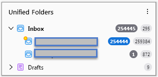 In this case, the Unified Inbox message count is way off but eventually, after about 3 hrs, showed the correct count. During these 3 hours, the CPU utilization was very high, I was not able to use TB, and I barely could use my PC.