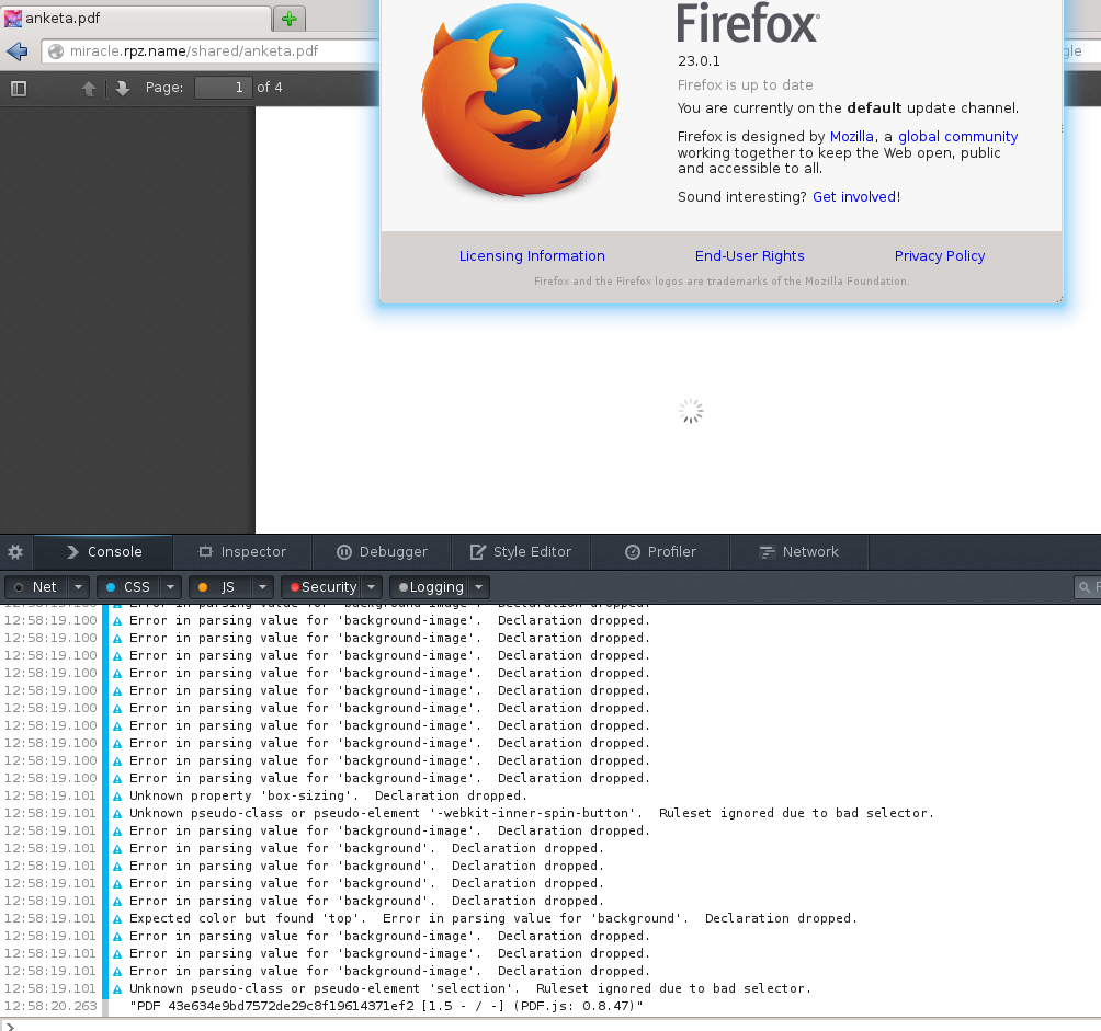 loadingIcon instead of content, no errors in console (screenshot http://miracle.rpz.name/shared/firefox-pdf-broken.png)